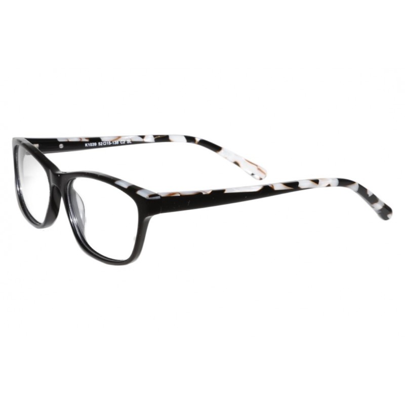 Montura en acetato para señora en color rojo con detalles en en color multicolor en frente y varillas.
