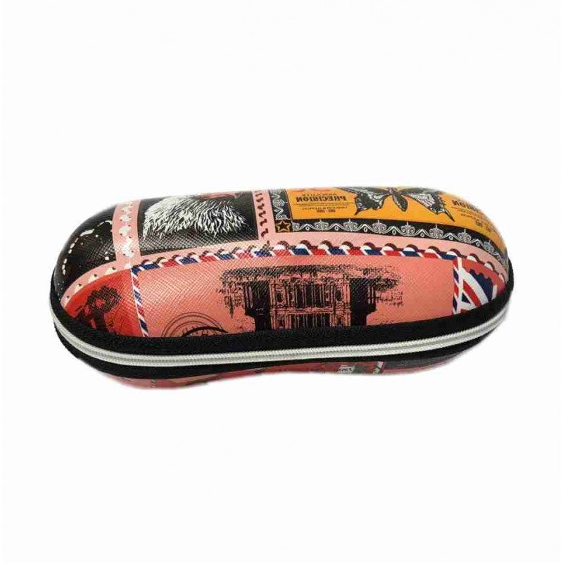 Estuche grande de cremallera con un diseño moderno, detalles de sellos y banderas.