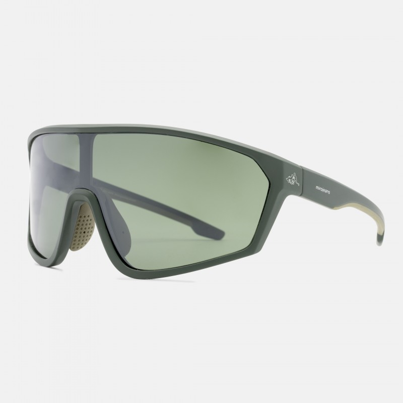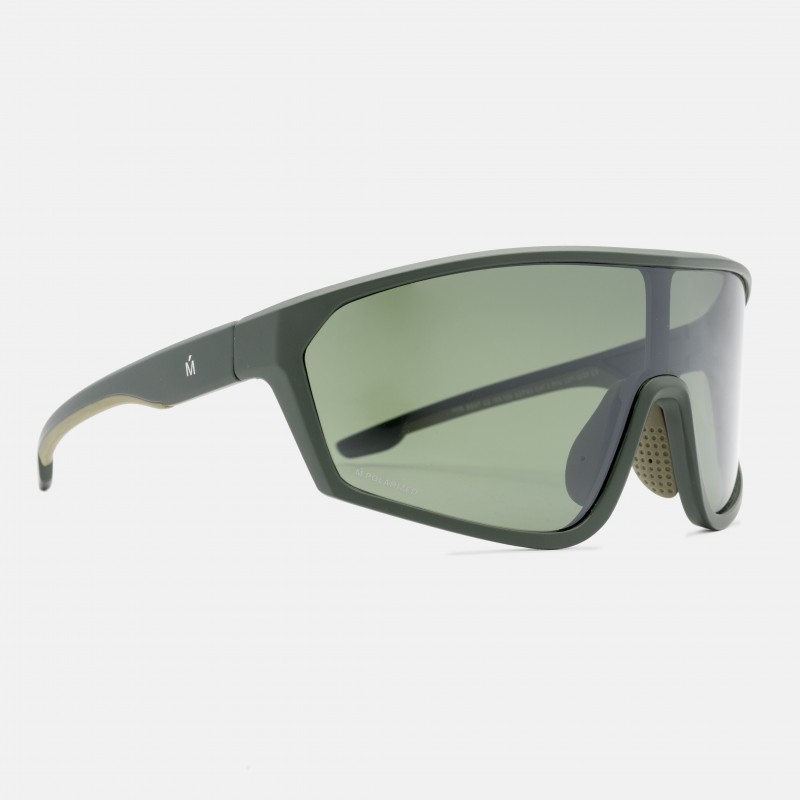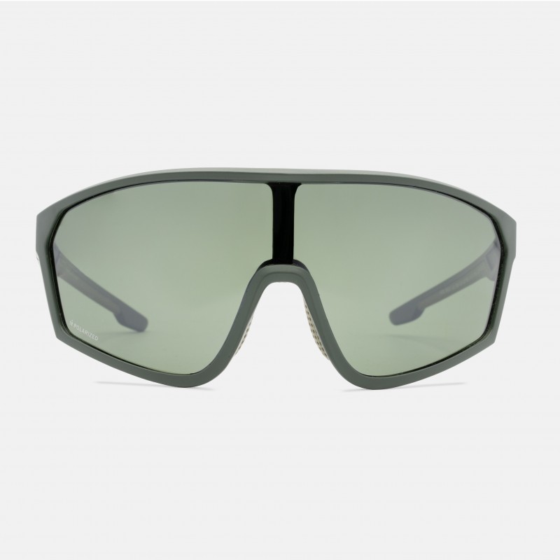Montura de pantalla envolvente con estilo deportivo exclusivo en TR90, acabado verde mate.