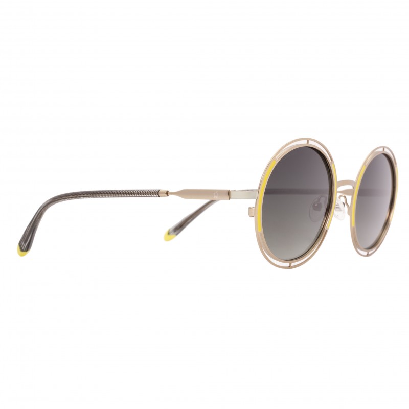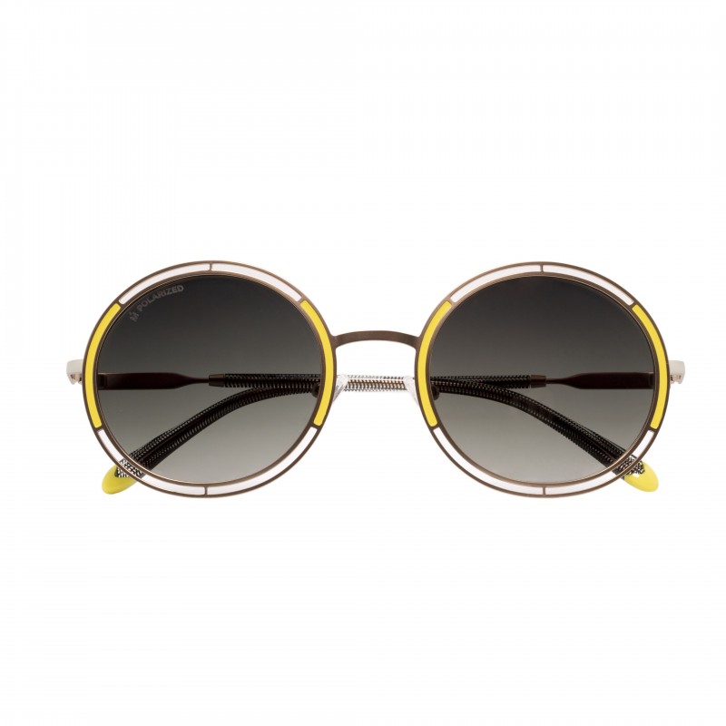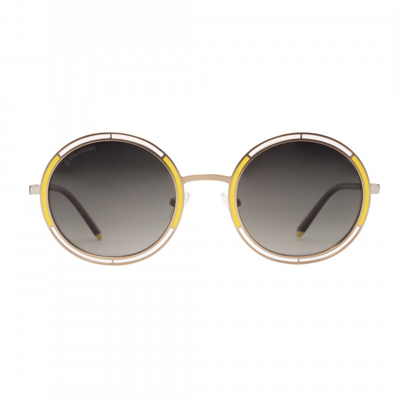 Montura en metal con forma redondeada en color dorado-amarillo.