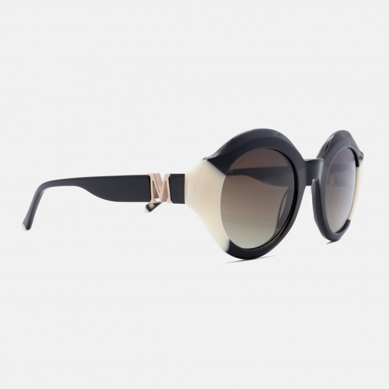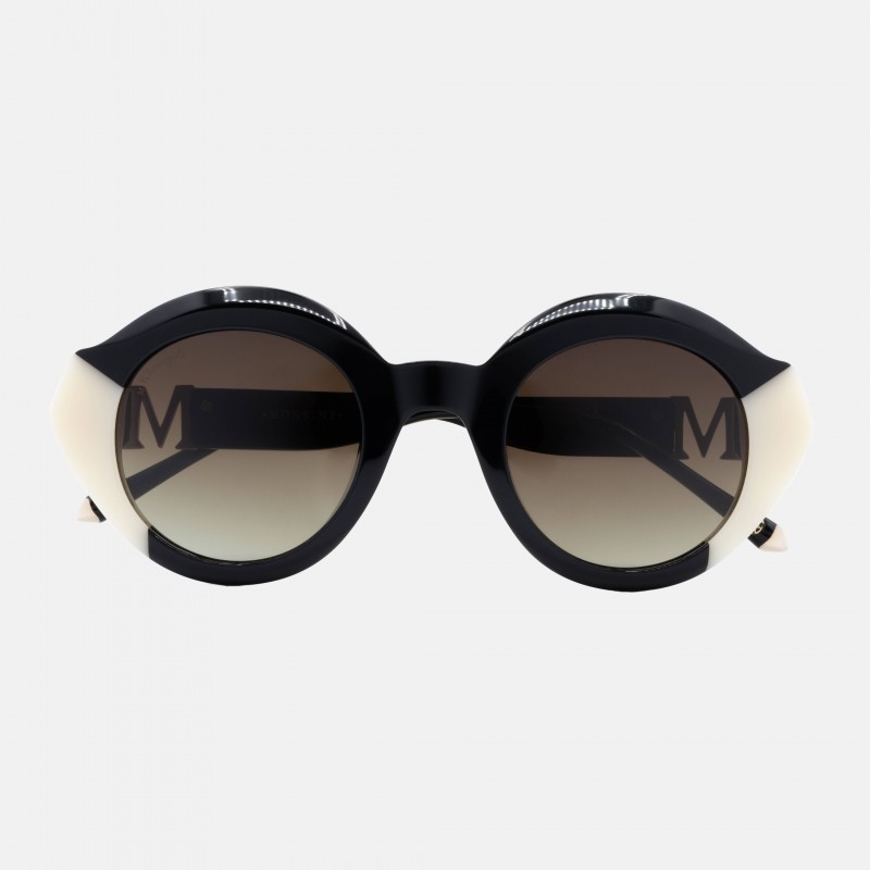 Gafas de sol con forma redondeada en color negro combinado con marfil.
