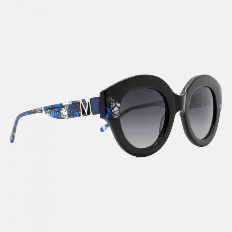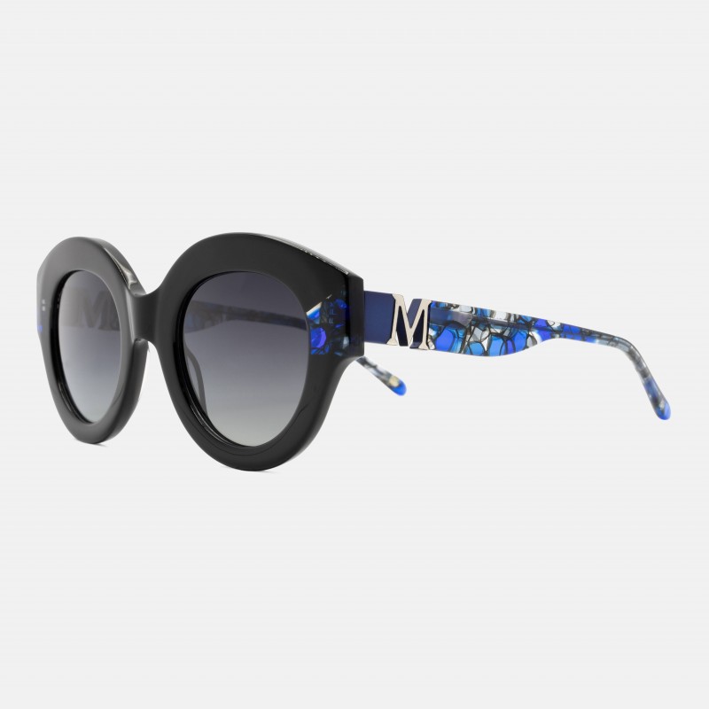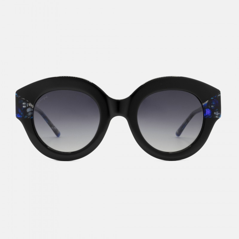 Gafas de sol con forma redondeada en color negro con color en talón.