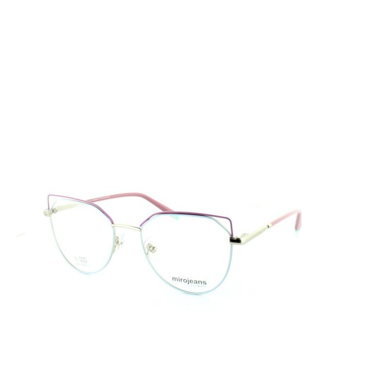 Montura metálica en acero inoxidable con forma agatada en combinaciones de colores mate azul claro, burdeos y dorado suave.