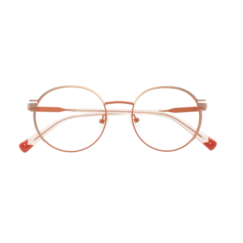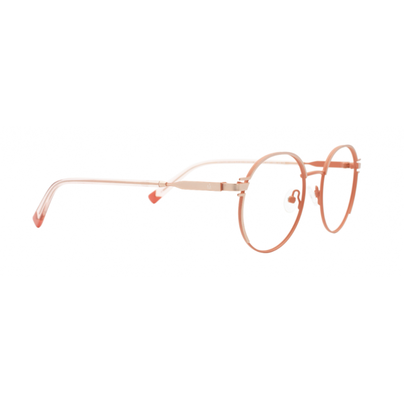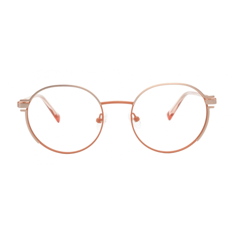 Montura en metal hipoalergénico con forma redondeada muy juvenil en color combinado marfil coral.