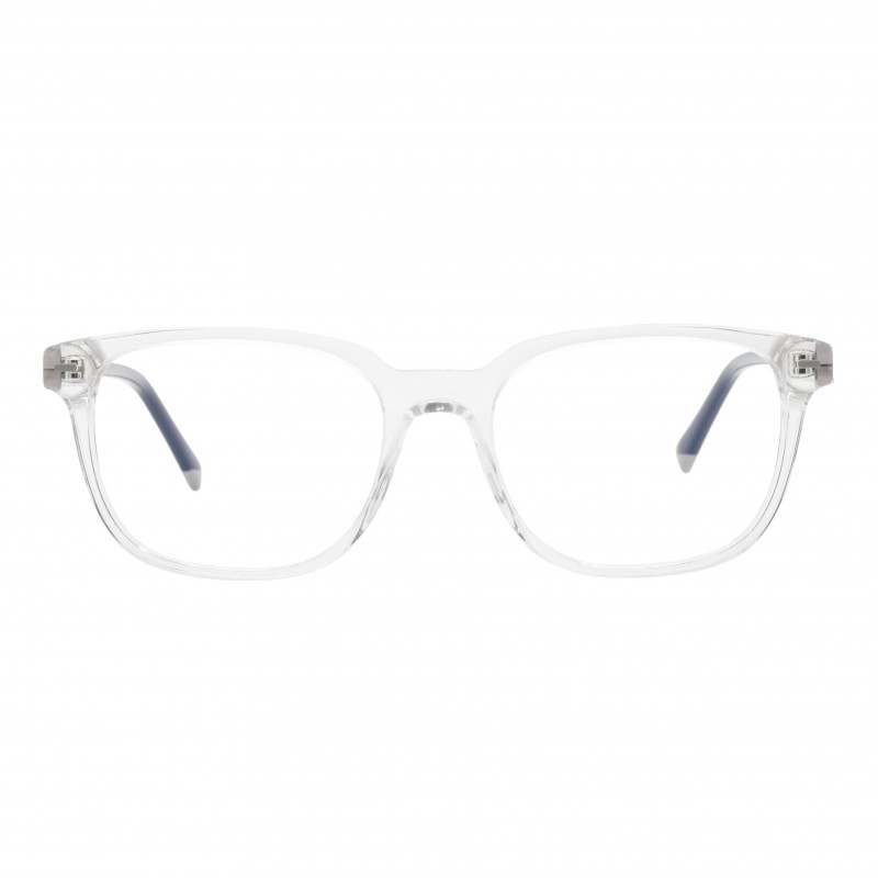 Montura en acetato natural hipoalergénico en color transparente con forma muy cómoda para gran variedad de rostros.