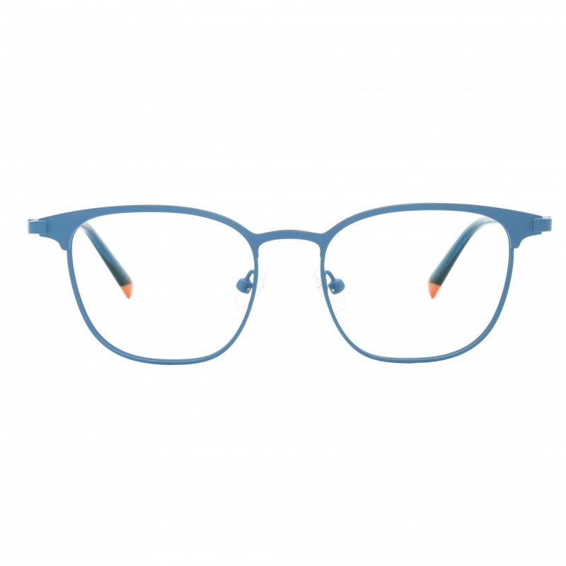 Montura en metal coloreado en color turquesa, forma cuadrada juvenil.