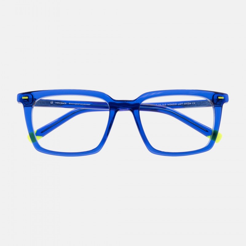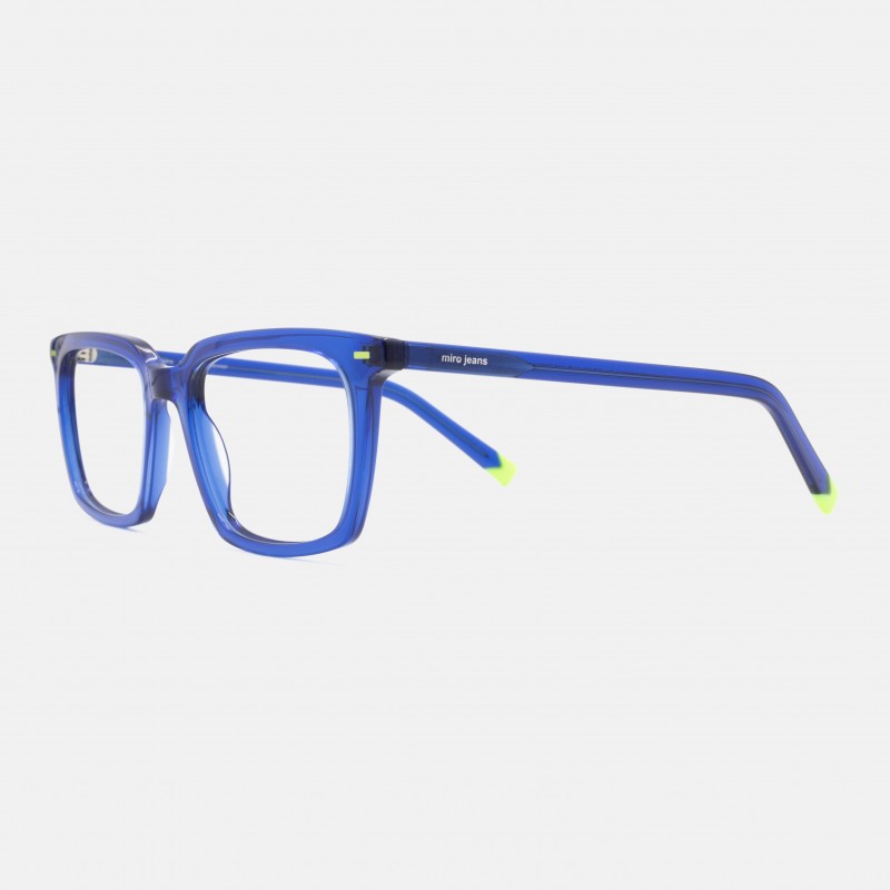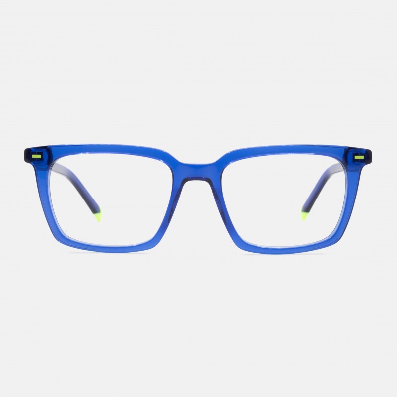 Montura en acetato natural color azul eléctrico, leves detalles en color amarillo.