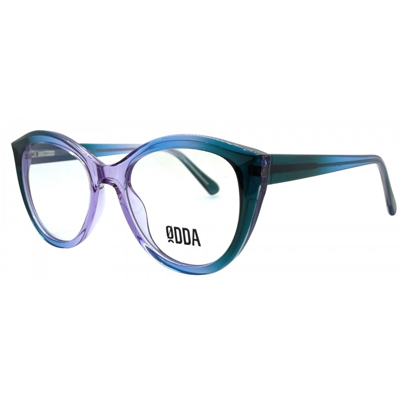 Montura en acetato con forma agatada en color azul, lila y verde.