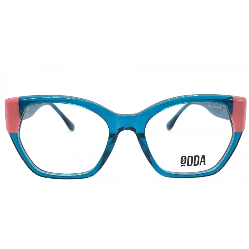 Montura en acetato con forma cuadrada agatada en color azul con detalle rosado en talón.