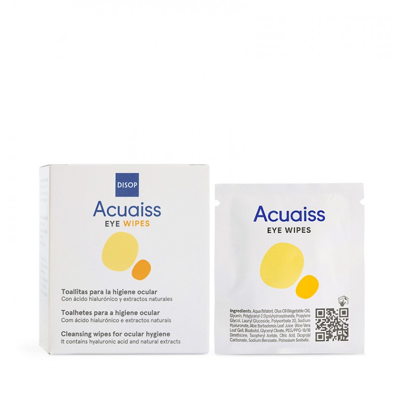 - Acuaiss toallitas están especialmente diseñadas para retirar suavemente secreciones oculares, como legañas, sebo y otros restos de suciedad. También están indicadas en casos de blefaritis o disfunción de las glándulas de Meibomio (situadas al borde de los párpados). En estas situaciones, se recomienda la aplicación de calor en los párpados, seguida de masaje y retirada de grasa mediante toallitas.